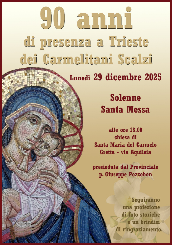 “Domenica scorsa 29 dicembre l’antichissimo Ordine dei Carmelitani Scalzi si è stabilito a Trieste in Gretta di sotto 152 con tre Padri e un confratello. Dire dell’accoglienza, del fervore di quella popolazione sarebbe superfluo se si pensi da quanto tempo si attendeva colà un risveglio di vita cristiana. Già di buonora donne e fanciulli del contado s’industriavano a incorniciare il vicolo di verde e bandierine tricolori. I conterranei a l’A.C. con i loro dirigenti attendevano schierati in bell’ordine l’arrivo di S.E. Monsignor Vescovo che dai reverendi Padri e da mons. Manega assistente del comitato, fu ricevuto e ossequiato sulla strada di Gretta. Dopo la rituale benedizione, la chiesina e le adiacenze si affollarono di ogni ceto di persone. Mentre le impareggiabili terziarie carmelitane innalzavano un devoto inno alla Vergine, S. E. si disponeva alla celebrazione della S. Messa. Al Vangelo il Presule amato pronunciò con cuore esuberante un paterno discorso che commosse fino alle lagrime. Ringraziò i Reverendi Padri, il comitato, i benefattori, auspicando all’inaugurazione non lontana della chiesa di Gretta, incoraggiando il popolo a usare di quel cenacolo di carità per la loro salvezza, invocando la Vergine del Carmelo, Regina di pace a tutti consolare e sorridere. Ci furono diverse sante comunioni. Seguì il canto del Te Deum e il Tantum ergo; e la prima benedizione eucaristica scese dalla bianca Ostia di pace a fecondare in mezzo a quel popolo l’attività iniziale dei bianchi figli di S. Teresa. Alla funzione del pomeriggio il Rev,do Padre Provinciale diede il saluto al folto uditorio, tracciò il programma, invitò tutti ad accostarsi al Signore attraverso il loro ministero, basato sulla preghiera e il sacrificio. Parole elevate, conquistatrici che commossero profondamente. Ed ora non cessando l’opera di accostamento e collaborazione delle infaticabili terziarie carmelitane e del comitato, bensì ampliandola, si continuerà a lavorare perché la piccola cappella, come ben disse il venerato Pastore, diventi presto una chiesa corrispondente alle spirituali necessità degli abitanti di Gretta.”