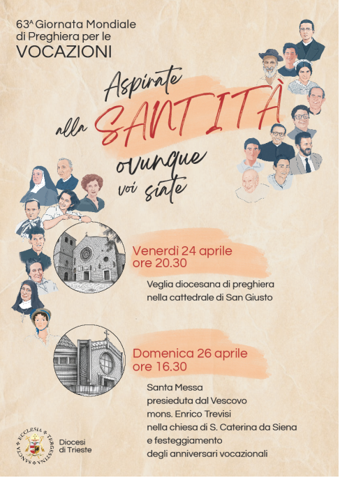 Venerdì 24 aprile 2026, alle ore 20.30, nella Cattedrale di San Giusto, il Vescovo mons. Enrico Trevisi presiede la Veglia diocesana di preghiera per le vocazioni.